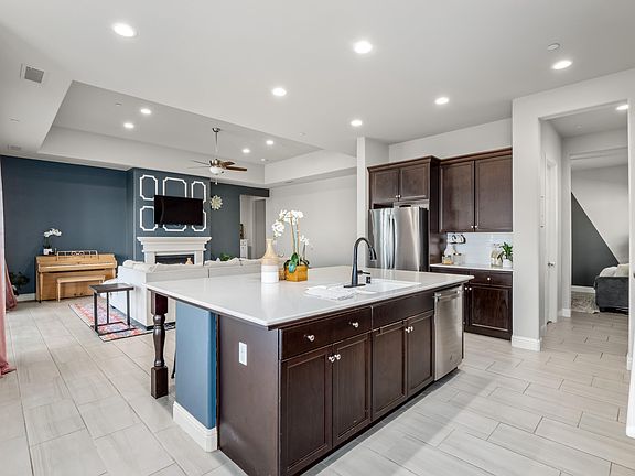 Welcome to the exquisite and rare Leo Wilson ' La Royal' foorplan, a masterpiece of design and craftsmanship, completed in 2020. W/ 4 bed + Den. This luxurious home boasts an expansive open-concept living and dining area, seamlessly centered around a majestic quartz kitchen island, creating an inviting hub for entertaining. The kitchen is a chef's dream, featuring stainless steel appliances, a spacious walk-in pantry, plenty of counter space, ample storageand an elegantly designed desk area that doubles as a built-in buffet or chic bar, perfect for hosting.Step into the grand living room, where a sumptuous fireplace serves as the centerpiece, casting a radiant glow across the room. One will also findraised ceilings and an opulent double sliding doorframewith views of thepatio & lush backyard.Modern 12x 24 tile flooring paves the way through the home, leading to two elegantly appointed guest bedrooms & a lavish full bath at the front. The versatile den, a jewel in the crown of this architectural marvel, offers endless possibilities, from a secluded office retreat to a formal dining room.The pice de rsistance is the owner's suite, discreetly situated in a private corner, featuring a closet so vast and luxurious it rivals an additional bedroom.The en-suite bathroom is a haven of opulence, with dual sinks set beside a sumptuous soaking tub, designed for indulgent relaxation, and a separate, walk-in shower.Completing this residence is an additional bedroom, another full bathroom. Solar includes backup Battery.