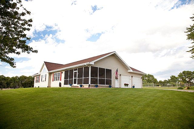 The quality and care that went into this better than new three bedroom three bath ranch-style home is easy to see. Inside you will find a view from every window. With an open and modern floor plan, this comfortable home has two bedrooms on the main level, as well as one in the basement. The kitchen, just off the attached two car garage, comes fully equipped with whirlpool stainless appliances and an adjoining laundry room with pantry. Step out from your kitchen door to a generous, fenced garden full of fresh, seasonal fruits and vegetables. The house is surrounded by 40 acres of low-maintenance native prairie with warm season grasses and wild flowers where you can spy deer, turkey, pheasant and quail.