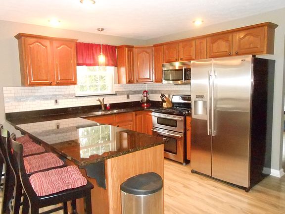 New Carlisle area home is located in Stone Oak Estates on a cul-de-sac. Some of the newer kitchen amenities include dishwasher, back splash, granite counter tops, and stainless steel appliances. The kitchen also has chalkboard doors and breakfast bar. There is new wood laminate flooring on the main level that includes the kitchen & Dinette area, Living Room & Dining room plus the den with built in shelving & dental crown molding. Lower level walkout basement features 2 entertainment spaces, a gas log fireplace, six panel doors, new mantel and stone work, new heated tile and new carpet. The large 11 x 21 master bedroom suite has crown molding, a generous walk-in closet & tile floor bathroom. There is also new carpeting on the staircase and bedroom #2 & #3. This home's outdoor haven incorporates a spacious backyard, large deck, raised 14 x 28 with a pergola, small pond with fountain plus additional lower level patio courtyard for you to enjoy. For the garage enthusiast this 3 car garage has new insulated door and hot/cold water. Sidewalks on the main streets, neighborhood playground and lighted gazebo are extra amenities in Stone Oak Estates.