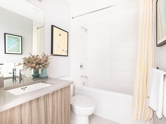 Set in the heart of Abbotsford's City Centre, Heinrichs Developments introduces a new landmark for urban living. Inspired by contemporary architecture and Scandinavian design, Court offers open concept floor plans featuring stainless steel appliances, polished quartz countertops, and modern cabinetry. This 1 bed+den home offers Mountain views to the East, a spacious walk-in closet, and 2 side-by-side parking stalls! Centrally located, steps from Sevenoaks Shopping Centre and minutes from Abbotsford's historic downtown core along with the picturesque trails surrounding Mill Lake Park. Construction completed November 2021 - Move in ready!
