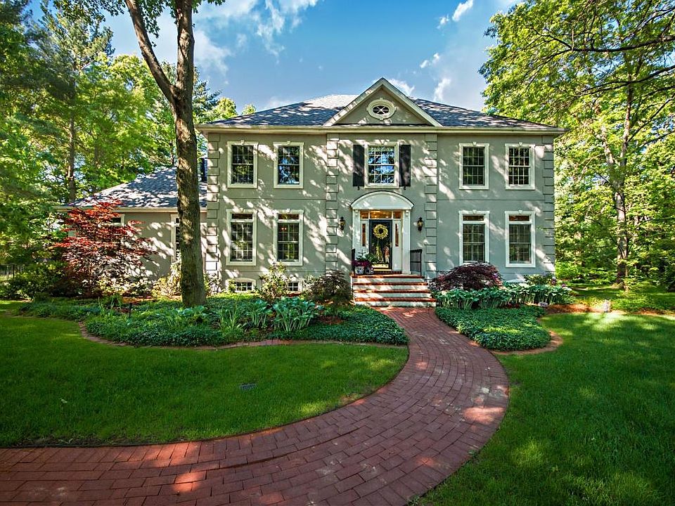 Graceful and well-designed home in THE ESTATES with attention to detail throughout.The rear yard off the kitchen/family room is stunning with NEW composite deck,in-ground HEATED pool,screened-in cabana complete with professional landscaping. Main floor includes formal living room w/fireplace,spacious dining room, kitchen with center island/granite tops and newer KitchenAid stainless steel appliances.Kitchen is open to family room with fireplace.Upper level has 4 bedrooms and 3 full baths. Master suite features fireplace, luxurious bath with double vanity, whirlpool tub,separate shower and expansive 12x14 walk-in closet.All three upper baths are very well appointed.You will love the finished basement with tall ceilings. Home is on a very spacious lot on a cul-de-sac with lots of PRIVACY