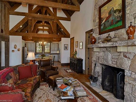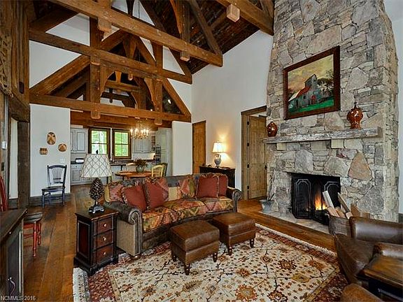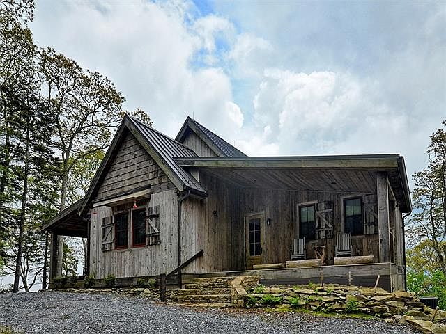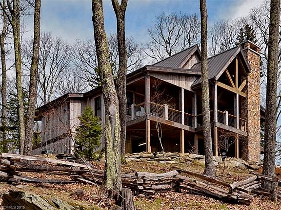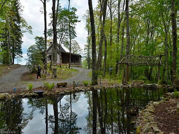 An awesome mountaintop subdivision created for those unique people that want to get away from it all, for artists, writers or outdoorsmen who want a special place that inspires them in every moment. Sited on a premium lot, this unique custom built home offers an elegance of its own. Rustic wood accents are thoughtfully blended throughout with windows placed specifically to catch the layers of mountains and spectacular seasons. Welcoming open floor plan with heart pine ceiling beams, rough sawn white oak floors & stacked stone fireplace in the great room that flows into the area dining and spacious kitchen that's complete with Bosch appliances & walnut counter tops. Two large master suites each with their own deck access. Watch the sun rise from the covered porch or end your day by the outdoor fireplace or fish pond. The Bunk House is a fun retreat for kids. Walk out your door to miles of hiking trails with incredible vistas and waterfalls, all on Mt. Lyn Lowry, Plott Balsam and beyond.