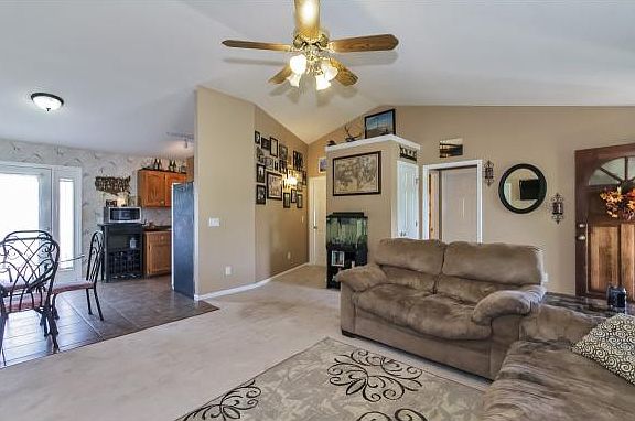 Catch the Stunning views of the sunset on this 1.34 acre lot backing up to a farm. 3 bedroom split floor plan offers lots of space in the home. Living room has vaulted ceilings and is open to kitchen area. Large back deck perfect for entertaining. Two large storage buildings convey.
