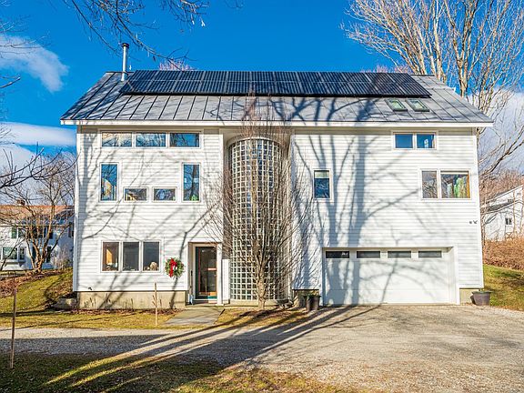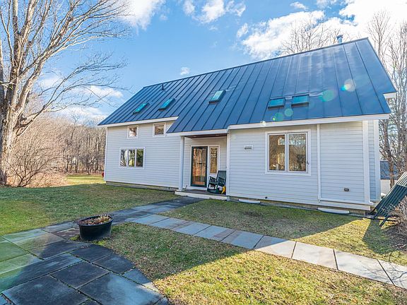 Fabulous energy efficient contemporary design home that is architect designed/owned, custom built in 2012 by master builder Robert Hopkins, and on the market for the very first time. This home offers three bedrooms and two bathrooms on 4.8 acres with garden shed, and detached barn, all within a very short distance of the Dorset Green. Many fine features including: hardwood flooring, air conditioning - multiple zones, cathedral ceiling in living room, wood stove, first floor laundry room, attached two car garage. Large areas of glass make interior spaces feel free and spacious. The glass block wall provides a wonderful luminous space in the center staircase area. Energy efficiency features include: solar panels on south facing roof, four (4) mini splits - heat/air conditioning, R-34 wall insulation, R-51 sloped ceilings insulation, whole house air exchanger, radiant floor heat on first floor, propane baseboard heat on second/third levels. Outside offers an inviting blue slate patio, level open yard area for garden space or outdoor activities, some woods, partially fenced.