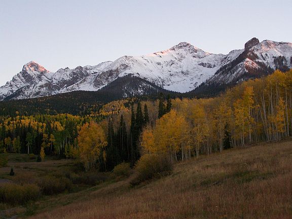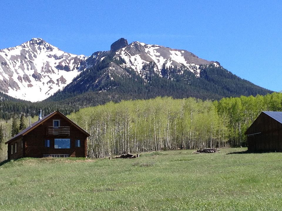 The absolute best views of Sneffels Range from a log cabin nestled in a meadow of mountain grasses and wildflowers with a seasonal stream below the cabin. Barn/Shop building for the toys and separate generator/solar shed. Just listed 5/16.