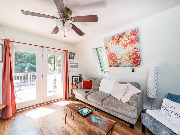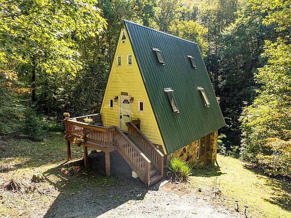 Your dream A-frame is here! A true rarity in our area, this adorable A frame is tucked away in the forest with the dreamiest view of the creek on the property below. If you're looking for a secret oasis this is it! The Living room is light and bright and features a deck with views of the creek and surrounding acreage. The home has 2 bedrooms one on the second story and one one the lower, which opens up to the screened in porch and hot tub. There is no more idyllic spot to kick back and relax after a long day!