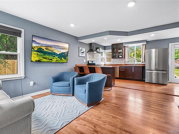 Absolutely adorable mid-century bungalow in the Sloan's Lake area! Situated on nearly 10,000 square feet, this charming ranch home captures the perfect blend of original character complete with all the conveniences of modern design. This stunning ranch home offers 4 beds, 2 baths, a generous, private yard and a detached 2 car garage with separate gardening shed. The upgraded kitchen is a chef's delight with rich wood cabinetry, striking backsplash, stainless appliances and gorgeous butcher block countertops. Sit on bar stools at the kitchen counter or gather in the custom built, eat-in dining booth. Either way, there is plenty of room to gather, entertain and enjoy this updated, open-concept floor plan. All 3 main floor bedrooms are flooded with natural light. One bedroom is perfectly appointed for a work-from-home space, art studio, craft room, yoga studio or anything else you may want. The tastefully updated basement features a light and bright primary suite, a separate sitting area and a gloriously updated 3/4 bath. The wide open family room is the place for movies, entertaining, a playroom, exercise area or an additional home office. If you choose to locate upstairs, the below grade primary suite offers a perfect solution for overnight guests who will surely enjoy the custom coffee/wine/cocktail bar. Out back is the true gem of this property with ample room for family and guests to gather and enjoy the beautiful Colorado weather. There is a generous area of grass to savor, a paver patio with wood burning fire pit, vegetable garden beds, a privacy screen with TV mount and a cute gardening shed for all of the tools. Don't miss the large 2 car detached garage with alley access. Best of all, you're just a few blocks away from all of the excitement of Sloan's Lake, Edgewater, the Highlands Square and Tennyson Street. Easy access to I-70, I-76, and 6th avenue. You'll be in the foothills or at the ski resorts in no time flat. Don't miss this opportunity!