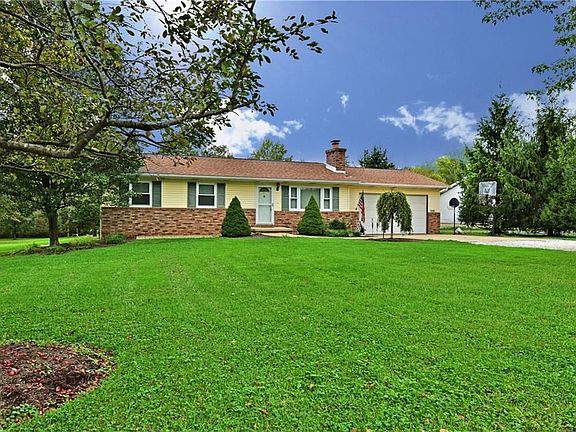 This beautiful ranch home features a host of recent updates including a totally revamped kitchen space! Charming good looks draw you in with well-placed trees and landscaping. A half brick façade pairs well with the newer roof. A large yard with outdoor shed with garage style door. Inside the home, hardwood flooring runs through the main living room where a brick fireplace resides. The huge serving window provides great views both in and out of the kitchen. Here, a bevy of mahogany colored cabinets. Recessed lighting as ceramic tile flooring is found below. A spacious, carpeted family room welcomes with tons of natural light. French doors allow for privacy while an additional side entrance is found near a half bath and basement entry. Three ample bedrooms line the main hallway, separated by a full bath. The larger master bedroom offers a pair of windows and larger closet space. Downstairs, a half-finished basement makes for an excellent rec area. Additional storage can be found adjacently while a sizeable utility room provides for a downstairs shower.