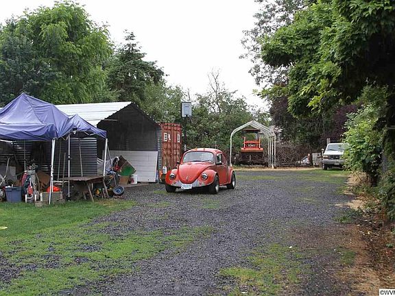 3-bedroom bungalow on almost 1/3 of an acre. Incredible vehicle parking with space for trailers, cars, tractors, ATVs, boats, etc. Covered parking in the back also includes water and sewer hookups for an RV. Single-car garage is 24' deep and is plumbed for a half bath. Additional secured tool storage in the garden shed and steel storage container. Updates to the house include tile work, vinyl windows, bath sink, lighting and laminate floors. Ductless heat pump system is efficient and also provides cooling.
