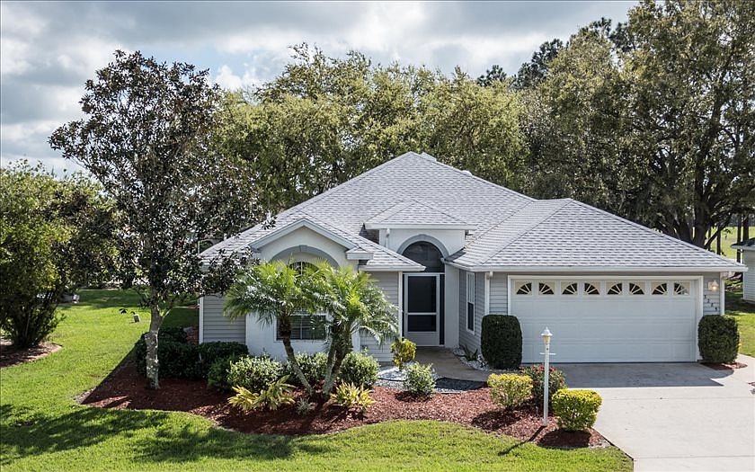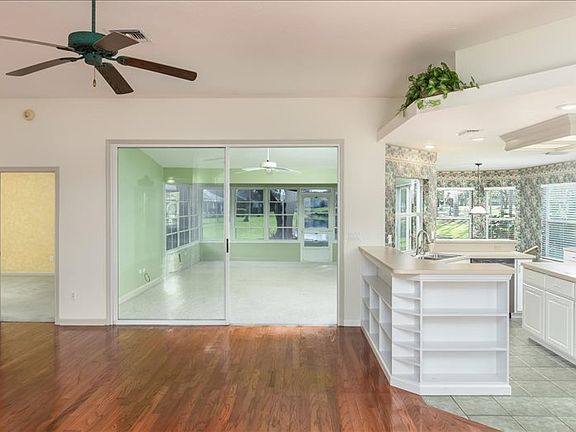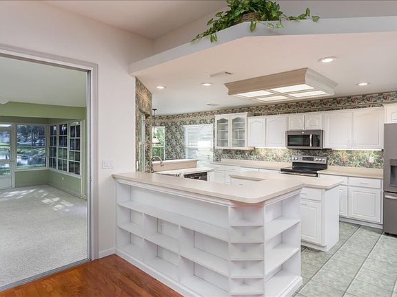 This well-maintained home is move-in ready! Kitchen features include: new SS appliances, sink & faucet, built-in hutch, center island & white cabinets w/pull out drawers. Large Owner s Suite with walk-in closet. Bath has jetted tub, double sinks, linen closet ceramic shower. 16x24 Lanai has vinyl windows, screens & air conditioner for 4 season use. There is a beautiful view of the pond from the Lanai, LR and Kitchen. High ceilings plus hardwood floors in DR, LR and foyer. The Den has double French doors making it a great place for an office or separate TV room. Low maintenance fee includes community amenities and lawn maintenance for a care-free lifestyle. Community amenities include two championship golf courses, restaurants, pickleball, tennis, library, fitness center, two swimming pools and more.