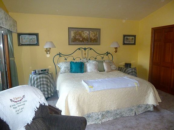 Waterfront living with acreage and private dock! Be inspired by the lake & it's territorial views from this open floor plan home with wrap around deck. Large master suite on main floor with access to deck & hot tub. 2 large bedrooms in basement have own entrance. Separate cabin by dock with fire pit for those summer time activities. RV parking with 200 amp power & water. Fenced garden area with greenhouse. Second well used only for sprinkler system. 325 ft water frontage. 15 min. from 3 other lakes!