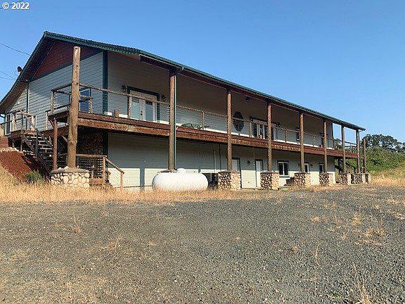 Check out this Lodge Style home on 230 rolling acres only minutes from Sutherlin. With 4 bedrooms and 3 full baths on the main level, your family will enjoy the privacy and views provided. The 1920 sqft shop has an enclosed balcony that is partially finished as a second living quarters. Bring your horses and enjoy the many riding trails and the wildlife which habitats this area.