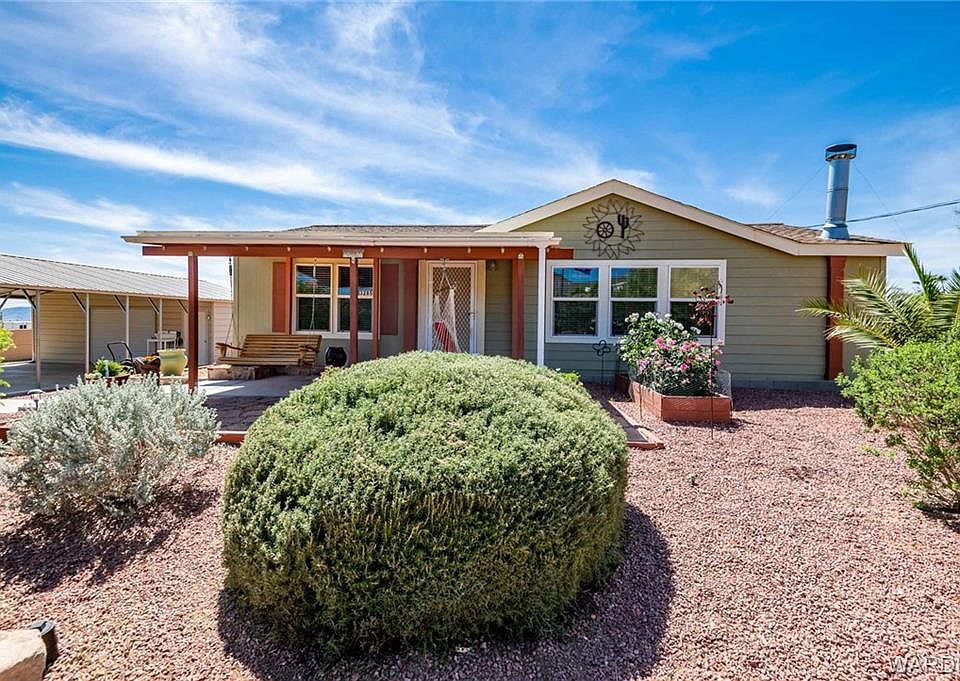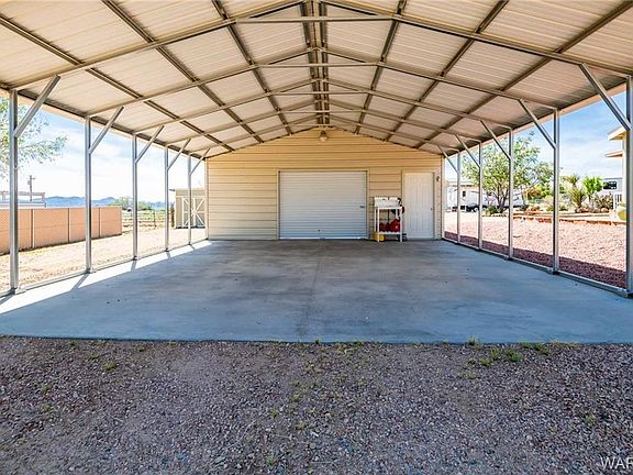 Fully fenced 2 bedroom 2 bath home on 1.1 acres with horse-farm fencing and horse stalls! This home offers 1,120 sq ft of living space, is all electric and has a detached garage and carport! Other important features include: *Security screens *Ceiling fans *Wood burning fireplace with stone accents *Newer paint *Wood look vinyl flooring *Causal dining *Upgraded Stainless steel appliances *Kitchen pantry *Indoor laundry with built in cabinets *Master bedroom with dual vanities and walk in shower *Guest bedroom with full guest bath *Covered patio with flagstone *RV parking w/ covered RV carport. Located just minutes from Kingman or Laughlin and features great views!