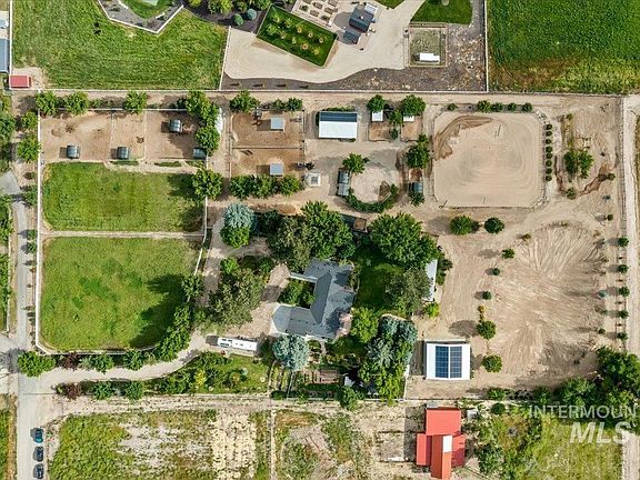 Quintessential Equestrian Hobby Farm in Eagle, ID! With Water Rights & No HOA/CCR's! If you have horses, or desire Farm-To-Table living, this one is for you. Nestled on nearly 5 acres, quietly tucked at the end of a cul-de-sac, this extensively updated home offers the perfect blend of comfort & practical living. Enjoy an expansive 3,083 sf interior with an open floor plan, master & guest suite on the main level. Ideal for enthusiasts of farm-to-table & equestrian lifestyles, it features orchards, berries, raised garden beds, & 3 chicken coops. Horse amenities include 2 stall MD barn with 12x 8 tac room PLUS 12x16 feed room. Additional 12 x 8 tac shed close to the wash rack. 36x42 hay barn. Equipped w/solar panels for energy efficiency! You'll love the beautiful mature landscaping that enhance the serene setting. JUST 2 miles from quaint downtown Eagle w/all convenient lifestyle amenities. PLEASE CLICK 'TOUR' FOR UPDATE LIST