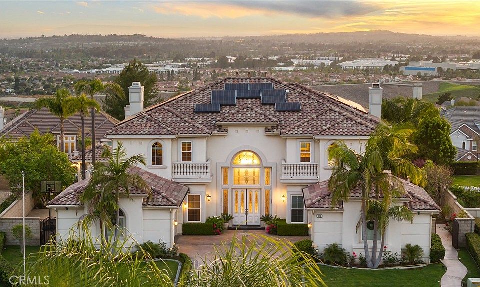 Yorba Linda rare hilltop luxury estate is coming!!! It is built by the famous luxury developer Toll Brothers. On the top of the mountain and cul-de-sac, you can overlook the entire Yorba linda city night view,Orange County, and Disney fireworks. Imagine watching the sunset while swimming. When you enter, you will see a grand double staircase and a luxurious crystal chandelier. The Living rooms, dining room and family room are lined up. When the sunset comes, sunlight can shine into room through the floor-to-ceiling windows. The Large , open, gourmet kitchen and island. The first floor offer a bedroom and full bathroom for guests to enjoy.The office is next to living room. The oversized master bedroom and bathroom on the second floor have two walk-in closets, a bathtub and a shower, 3 dressing tables. master bedroom offers balcony with view. The three guest rooms on the second floor are come with 3 full bathrooms and closets. Rare floorpan and great location, Welcome home!