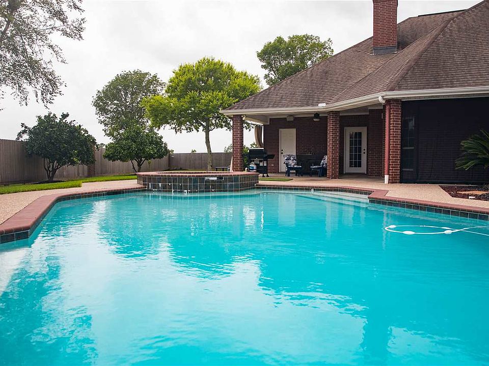 Open concept custom home on 2 cul-de-sac lots in the West Chasse Subdivision. Home has natural lighting, grand foyer entrance, and formal living/dining areas. Crown molding and tray ceilings throughout. Spacious kitchen with custom cabinets, granite island, and bar which includes double ovens, Jenn aire 6 burner gas cook top, and a wine cooler. Breakfast and and family room lead to a French door entry with to 2 covered patios. The backyard has mature citrus trees that are heavy producers. Gunite pool/hot tub with patio area that leads to a 1/2 bath. Three of the bathrooms have walk-in closets (1 hollywood bath and 1 private bath). Three car garage with additional storage area. New 4 Ton High Efficiency AC Unit and 50 gallon Water Heater. Both were installed April 2020. The home has 2 hot water heaters. DID NOT FLOOD in Harvey or Imelda.