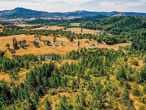 Enjoy privacy on 230 +/- acres with pasture and your own private forest! Lodge style home with high vaulted ceilings, cypress hardwood flooring, stone fireplace & open floor plan. Two master suites! Den/office/4th bedroom. Guest bedroom w/loft! Wrap around porch! Daylight bsmt w/ easy to finish office/den/guest qtrs with 1/2 bathroom & plumbed for 2nd bathroom. Year round pond with 2nd seasonal pond! 3 active wells! Shop w/unfinished guest quarters. Room for horses, vineyard, and more!