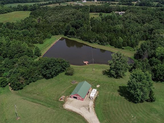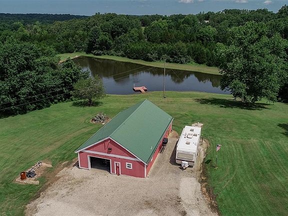 Escape to your own private oasis just an hour west of STL! This stunning 25-acre property boasts a 3.5-acre stocked lake with a dock, perfect for fishing bass, crappie, catfish, and bluegill. The property features an impressive 1800 sq ft outbuilding that doubles as a workshop /shouse. Inside, you'll find insulated ceilings, a full bath, a full kitchen with bar, sink, new refrigerator and range, along with an electric furnace, ceiling fans, and a 200-amp service panel. With private well and septic systems in place, this retreat offers both comfort and self-sufficiency. Nature enthusiasts will appreciate this deer sanctuary and the peaceful surroundings that invite outdoor activities year-round. A storm shelter/bunker adds an extra layer of peace of mind. Don't miss this rare opportunity to own a slice of paradise where you can unwind, explore, and create memories surrounded by natural beauty. Schedule your private tour today and experience everything this unique property has to offer!