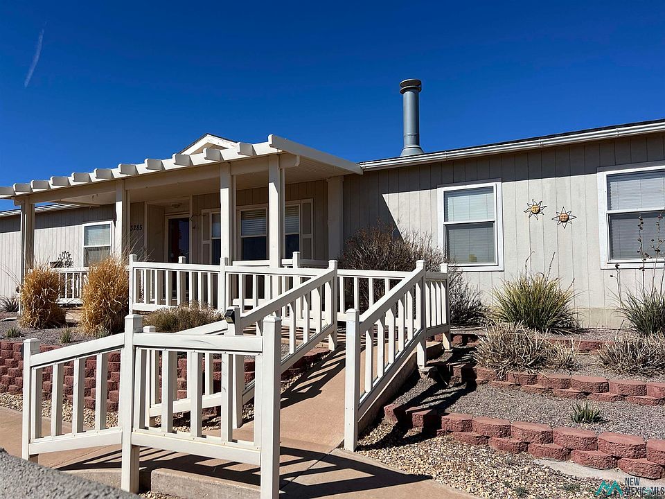 What a charming southwest home! Sits on 1.92 acres, 2016 sq ft on a permanent foundation. 4 bedrooms 2 full bathrooms plus a 1/2 guest bathroom. Dinning area with big spacious living room and a wood burning fire place. Laundry room. Master bedroom with walk-in closet. Double sinks in the master bathroom shower and tub. 2 Car detached garage, pine trees, rose bushes and many desert plants all around the home. Come check see this beautiful home.