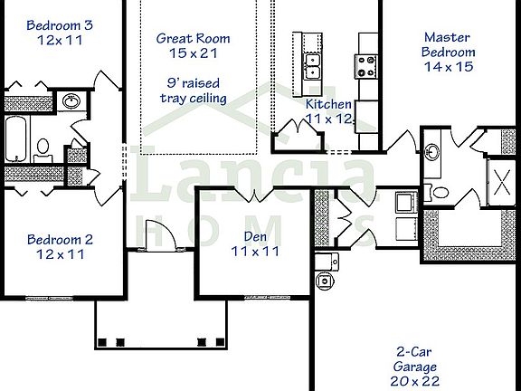 If you are looking for that open concept feel in a ranch with a Den, then Lancia's NEW split ranch design the Mandalay is what you are looking for. This is a 1,673 sq. ft. home located on a Pond Lot has a 3-car garage, 3BDR's, 2 Full Bath's plus a Den for that necessary home office space. Your guests are welcomed to this spacious ranch and will notice the elegant features. GR has 9' raised tray ceiling, gas fireplace, wood laminate flooring and ceiling fan. Kitchen opens up from the Great Room showing off granite counters, glass tile backsplash, wood laminate floors, stainless microwave & dishwasher, (this is electric wired or gas line for range) and dual-door pantry. Wood laminate flooring also in Nook, Utility and Foyer. Upgrade faucets in Kitchen, Master Bath and Main Bath. Master Bedroom has raised tray ceiling. Dual sinks in Master Bath. Master has walk-in closet. Separate Utility Room off Garage includes dual door closet, great mudroom for coming in thru Garage. 14 x 14 Patio off the Nook. Shakes, Dutch gable, corbels, brick on elevation. 3-Car Garage is finished and has pull-down stairs for storage up in attic. Plenty of storage in this home. Upgraded trim. Newest Energy code standards. Water and sewer tap included. (Grading and seeding completed after closing per Lancia's lawn schedule.) SWAC schools, close to Scott Rd shopping.