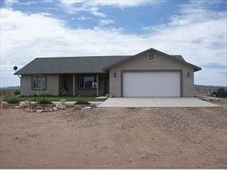 Wide open space with gorgeous panoramic views. Whether its entertaining family and friends on the expansive back patio or sitting watching the sun rise with a cup of coffee on the front porch, this home gives you every opportunity to enjoy the beauty of Northern Arizona. Walking in the front door, you immediately notice the vaulted ceilings and spacious great room. A large sliding door lets in a ton of natural light and gives great sight lines from the front to the back of the house. A split floor plan, there are 3 bedrooms and 2 baths. This includes a spacious master with dual sink vanity and walk-in closet. The other bedrooms share a bath on the opposite side of the home, giving privacy to family and guests. The attached 2-car garage (see supplement for additional information)