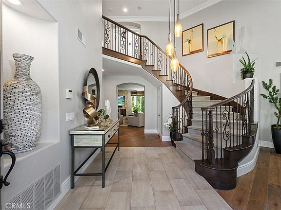 Welcome to 32852 Brookseed, a Turn-Key Reimagined residence on a Cul-De-Sac in the highly desirable community of Robinson Ranch. As you enter through the double doors, you're greeted by a stunning two-story foyer with abundant natural light, soaring ceilings, and wood flooring. The main level features a formal living room with a cozy fireplace and an elegant dining room. The heart of the home is the custom designed Chef's Kitchen, which boasts a large center Island, stainless steel appliances, custom cabinetry, and sleek Quartz countertops. This open-concept design flows effortlessly into the living and dining areas, creating the perfect space for entertaining. Large windows in the kitchen offer a beautiful view of the backyard. The first level has a versatile downstairs bedroom with a full adjacent bathroom. This room has been converted into a unique wine tasting room with a 270-bottle wine cellar but can easily be converted back into a bedroom. A separate laundry room with a sink completes the main level. Upstairs, the luxurious primary suite is a true retreat. The ensuite primary bathroom features a relaxing soaking tub, a spacious walk-in shower, dual vanities, and a large walk-in closet. The second floor also includes two generous bedrooms with an adjacent full bathroom. One of the bedrooms is currently used as a large Bonus Room perfect to use as a game room, office space, or bedroom. Outside, the spacious backyard is an entertainer's paradise, with a covered patio, a spa with a rock feature, and a grass area. The home also features a newer HVAC system (2023) and a 3-car garage. Sellers are Original Owners. Community amenities include a Junior Olympic-sized pool, spa, parks, and sport courts. The home is also a short distance from hiking and biking trails, regional parks, Rancho Santa Margarita Lake, and award-winning schools.
