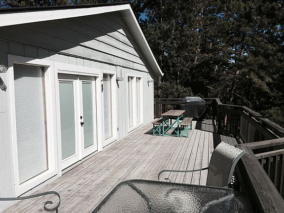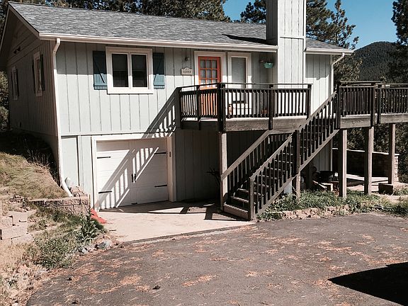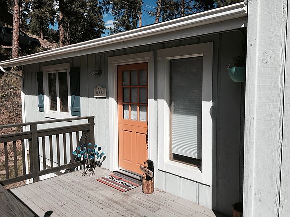 WOW! Incredibly remodeled ranch with walk-out basement featured in the design blog HOUZZ! RARE Main Floor Master Suite! The open floor plan with vaulted ceilings and floor to ceiling windows creates a spacious yet cozy feeling space while connected to the outdoors. The large wraparound deck. The interior was superbly designed and finished. This caliber of home is rarely found in Evergreen especially under 500K. Beetle Kill Pine and Reclaimed Barnwood abound. Hand-scraped wood floors throughout the Main floor and gorgeous stained concrete floors in the basement. The custom kitchen features white shaker cabinets, stainless steel appliances, concrete and quartz countertops, plus a custom built Kitchen Island. Custom lighting throughout the home. Heated tile floors in all 3 baths. Tons of storage and closet spaces. The basement features an additional guest suite and living room with walkout The sellers have used the gas stove exclusively for heating with low bills! DO NOT MISS THIS!