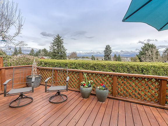 Enjoy the expansive view of the mountains and the Cascade foothills from this perfectly maintained 1-level 3 bdrm, 2 bath hm located in a well-established neighborhood in the Scappoose west hills. Gleaming wd flrs, cozy fplc, updated kitchen and baths w/custom birch cabinets and a brand new gas furnace! The fenced back yard includes two water features, beautiful landscaping and garden area. Relax on the deck and enjoy the view!