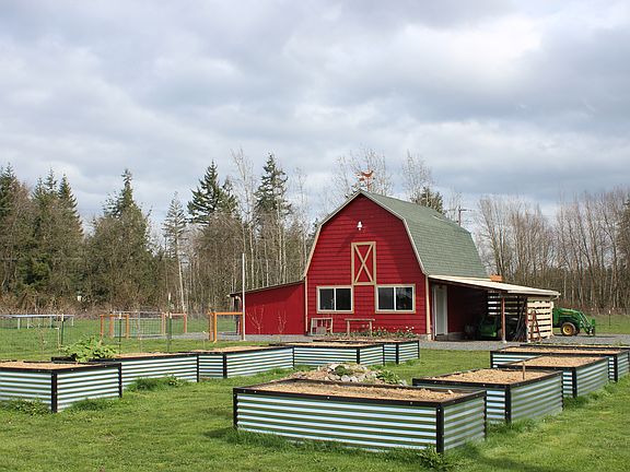 Here is your chance to own a level 4.86 acres in a desirable mid-county location. Spectacular 2 bedrooms 1 bath rambler with 2 car garage has been completely remodeled from the inside out! New roof, siding, kitchen cabinet doors, bathroom, trim, flooring and paint. Fully fenced pasture for your animals. Large garden area and raised garden beds already tilled and ready for seeds to be planted. A large barn with a fully heated shop on first floor with 220 power, 9 foot ceilings, 24 led can lights, 42 inch doors, built in work bench. Second floor of the barn is a project started waiting for you to finish it. 10 ft ceilings, insulation ready to be installed, wired for sub panel, deck framed out. Possible mother in law suite?