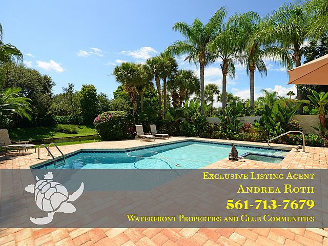 Gorgeous custom two-story home in amenity rich Frenchman's Creek. This 2,840 sqft home offers 3 bedrooms and 4.1 baths with beautiful lake views from the tropical covered outdoor area with a sparkling pool and spa. High end finishes abound with walls of glass, polished marble flooring, custom wall and window coverings and built ins. The kitchen boasts maple wood cabinets, double oven, granite counters and custom mosaic back splash with a bright breakfast area and adjoining family room. The living and dining rooms are an elegant space for formal entertaining. The large first floor master suite is appointed with His and Her master baths, walk in closet, vaulted ceilings and a private patio entrance. Two large guest suites are located on the second floor offering both owner & guest privacy.