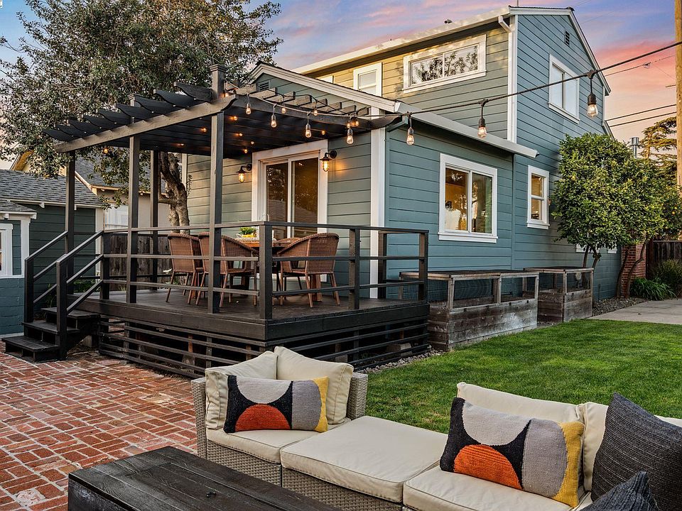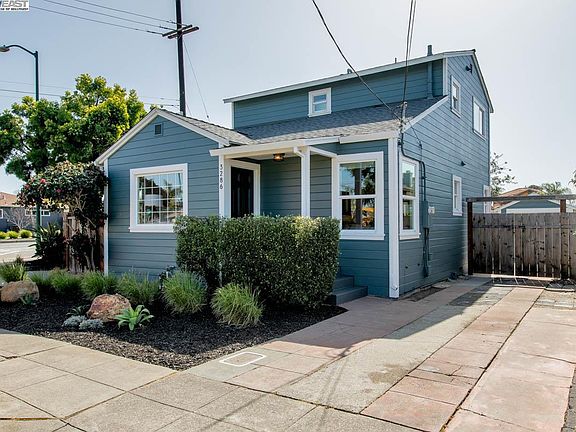 A sought-after Alameda location combined w/a pristine, move-in-ready home is yours with this fabulous East End home! Located just minutes to top schools, parks, Trader Joe's & shoreline trails and beaches, this 2-story home features 4 BR, 2 BA, a traditional living room, an open kitchen/DR + laundry room, all on a large, wrap-around corner lot w/fantastic indoor/outdoor living spaces. Thoughtfully renovated from top to bottom with no detail overlooked by the present owners, the home has a pleasing, flexible floor plan with 2 BR/1 BA on the main level and 2 spacious BR and a beautifully remodeled bathroom upstairs. Details include refinished hardwood floors, a lovely fireplace with an attractive gas insert, dual-pane windows, spacious rooms with abundant natural light throughout + much more. The primary BR includes a gorgeous ensuite BA with high-end fixtures & finishes, while the kitchen features new GE Cafe "Smart" appliances, Caesarstone counters and loads of kitchen storage. New furnace & interior/exterior paint (2022-2024). Fabulous backyard with patios, raised beds, lemon, lime, orange, avocado & apple trees + a pergola-covered raised deck off the dining room. A detached garage includes a bonus space for storage or a home office/studio. A perfect home in a perfect location!