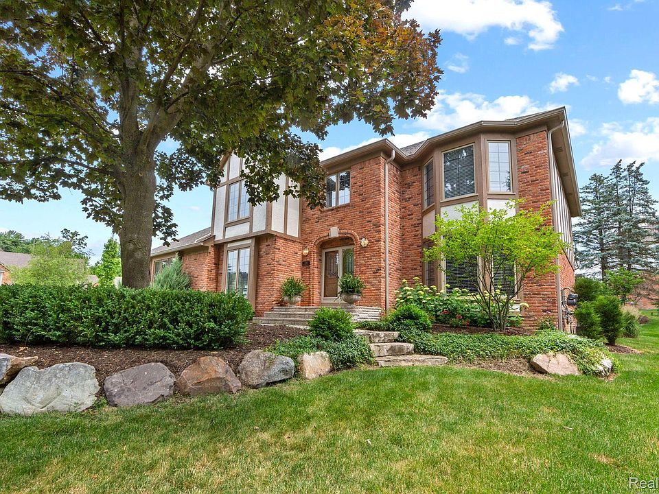 Welcome to this stunning modern residence nestled in the coveted Hawthorn Hills Subdivision of Rochester Hills. This meticulously maintained 3200 square foot home boasts four generously sized bedrooms, each offering comfort and privacy. As you enter, you are immediately enamored by grand staircase, expansive engineered hardwood flooring that span both levels of the home, bright can lighting throughout offering clean lines of modern elegance all while creating a warm and inviting atmosphere. The main floor flaunts a private office with French doors, providing a quiet retreat for work or study. First Floor Laundry, Large Kitchen with granite counter tops, Stainless Appliances including a double oven, gas cooktop and hood fan combination that really makes this space shine. Seamlessly open to the Family Room where the focal point is a beautiful gas fireplace surrounded by a white brick surround from floor to ceiling. The Primary suite features 2 walk-in closets and an elegant en-suite with a standalone soaker tub and beautifully tiled shower stall. Entertain with ease in the spacious finished basement, complete with a blackout ceiling, luxury vinyl flooring, a wine bar station with built-in shelves, a stylish half bath, workout area, and ample storage space. Step outside and savor the freshly stained oversized deck, extending the home's modern elegance into the outdoor space. The yard has been professionally landscaped with privacy and ease of care in mind, enhancing outdoor enjoyment and creating a perfect setting for gatherings. This home offers a perfect blend of modern amenities, thoughtful updates, and abundant space for living and entertainment, making it a must-see property and a contender for your next home. Its location and amenities are hard to find. Come Quick!