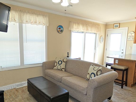 Lowest-priced ocean front available in all of the Ocean Beaches! Home has two bedrooms, but the large utility room can become a third! This Energy Star home was built in 2015 with 6'' walls, high-quality Pergo floors, Andersen slider with built-in blinds, central air and heat, Rinnae tankless hot water heater, ceramic tile bathrooms, granite counters in kitchen, dishwasher, attic storage and vinyl siding. Leased land for great tax write-off if rented seasonally.