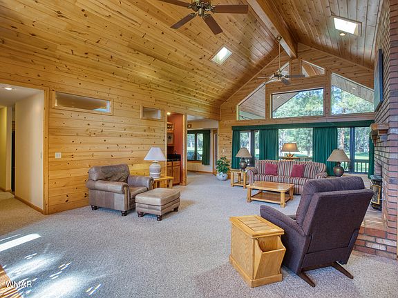 Located in Pinetop Lakes Country Club on the 13th fairway. Cedar siding, concrete circle driveway. Covered decks front and back. Single level four bedroom, two bath home with 2 car garage. Kitchen has wood flooring, granite counters, stone backsplash. Living Room has T&G vaulted ceilings, gas stove, large windows with panoramic views of the fairway, wet bar. Very well maintained home with Pinetop Lakes Recreation Center privileges offering Club House, tennis, pickle ball, pool, disc golf and exercise facility. Close to Pinetop Lakes Golf and Country Club which is open to the public. Hiking and biking trails near by.