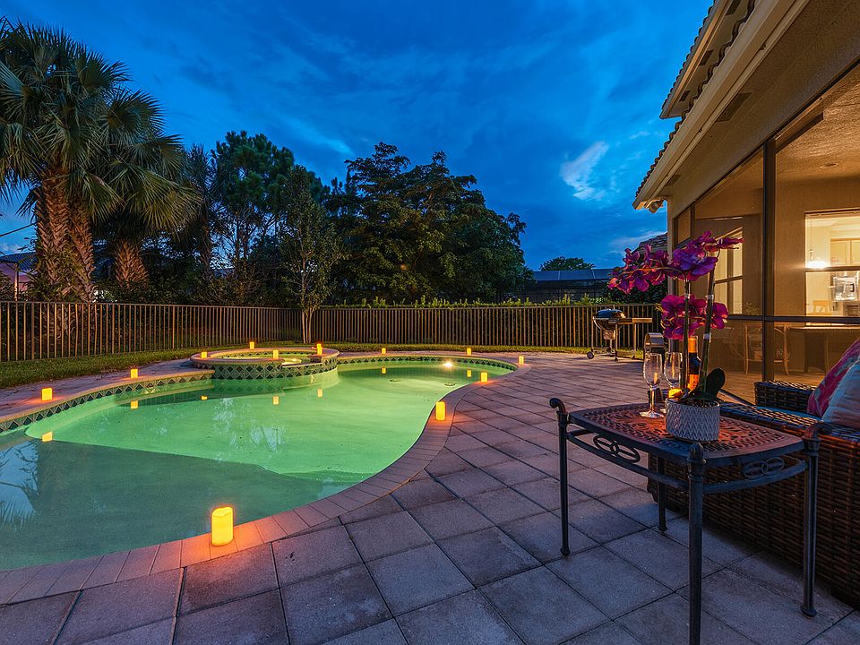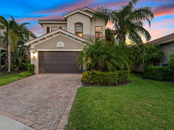 Welcome to the beautiful, gated community of Riverstone. This amazing 5 bedroom, 4 full bath, home is located on a private cul-de-sac in the heart of North Naples. The light and bright floorplan features an entry foyer, living room, family room with pool views, breakfast nook, separate dining area, NEW flooring upstairs, crown molding, wainscoting, and an extra storage area with cedar wood. The chef's kitchen is sure to impress with granite countertops, SS appliances, recessed lighting, plenty of cabinets, and a breakfast bar. The large master bedroom located upstairs offers walk-in closets, an en-suite with dual vanities, corner soaking tub and a separate walk-in shower. The loft/billards room is the perfect place for family time and provides easy access to the additional bedrooms. The covered, screened lanai makes an excellent place to entertain and overlooks the oversized fenced yard. When you're ready to relax, take a dip in the custom salt-water pool or soak your worries away in the spa! Riverstone offers a great location close to the beach, shopping, restaurants, and has many amenities including a resort-style pool, pickleball, tennis courts, and more.
