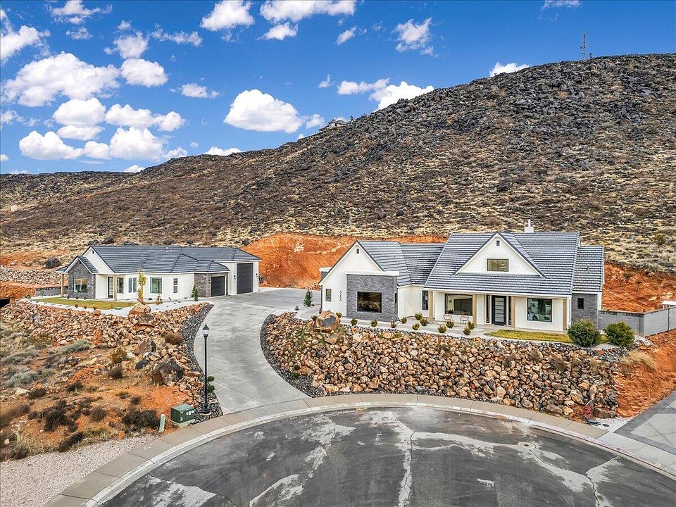 A hillside built home encompassed with stunning sandstone, providing complete privacy. GORGEOUS sunset views from your front porch, primary bedroom & front room. Privately enjoy the serene mountain and valley views through tinted windows. High quality selections such as high ceilings, Bosch appliances, large wet bath, floor to ceiling tile in living room and bathrooms, 2 HVAC systems, jack and jill laundry room to primary closet, etc! The 1130 sf guest house can come fully furnished with the ability to nightly rent (restrictions apply) The bid to complete the backyard according to the renderings is available per request. OWNER/AGENT. Guest house showings are restricted to when there are no airbnb guests.