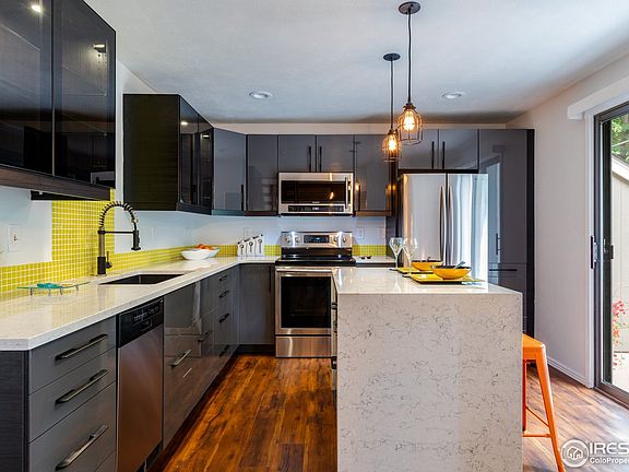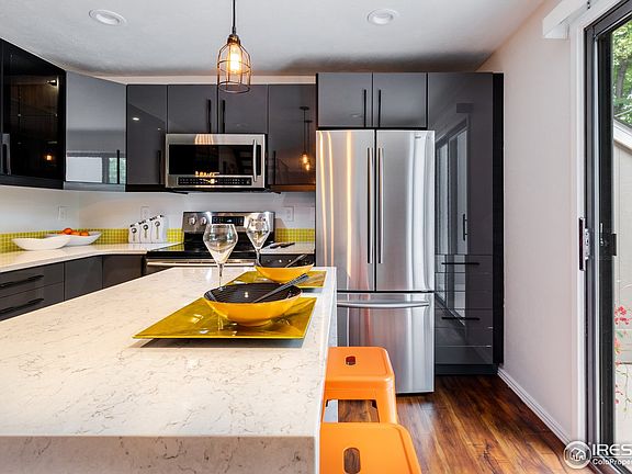 Price reduced! Stunning, Completely remodeled 2 story in SoBo. Blks to trails! Seller removed 1 wall to create lrg 1 bed w/loft but can easily be returned to 2 bed. Great reconfigured flr plan w/huge kitchen w/island open to dining & fm rms overlooking lrg deck.Vaulted ceilings & tons of light.All new: kitch/baths/flooring/Modern cabs/lighting/appl/slab tops/euroglass doors/freestand tub/custom closet & more!Across from Pool & Comm. garden, lrg deck w/flatiron views .1 car garage. Gorgeous!