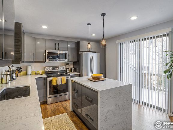 Stunning! Completely remodeled 2 story in SoBo just blks from trails. Seller removed 1 wall to create lrg 1 bed w/loft but can easily be returned to a 2 bed. Great reconfigured flr plan w/huge kitchen w/island open to dining & fm rms overlooking lrg deck.Vaulted ceilings & tons of light.All new: kitch/baths/flooring/Modern cabs/lighting/appl/slab tops/euroglass doors/freestand tub/custom closet & more!Across from Pool & Comm. garden, lrg deck w/flatiron views & views of open space.1 car garage.
