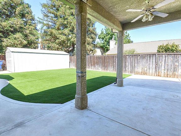 The home owners recently spent over $30k in remodeling!! Why buy a cookie-cutter home when you can live in a beautiful custom built home in Clovis with RV Parking! The home boasts 4 spacious bedrooms (4th bedroom being used as a theater room by sellers but can easily be converted back into a bedroom), 2 1/2 bathrooms, formal living, formal dining room and an open floor plan perfect to entertain guests. The house has brand new synthetic turf lawn in the front and back yard, tankless water heater, new HVAC system with upgraded duct work in addition to a 3 zone temp control, purchased solar system and a new roof installed this year! The backyard is a retreat itself with mature landscape and abundant cement work perfect for entertaining or simply enjoying a beautiful evening outdoors. The home sits on a large lot and shows pride of ownership throughout the property. The home is a hop, jump and skip away from a park perfect for young families to make many lasting memories. This home is sure to impress!