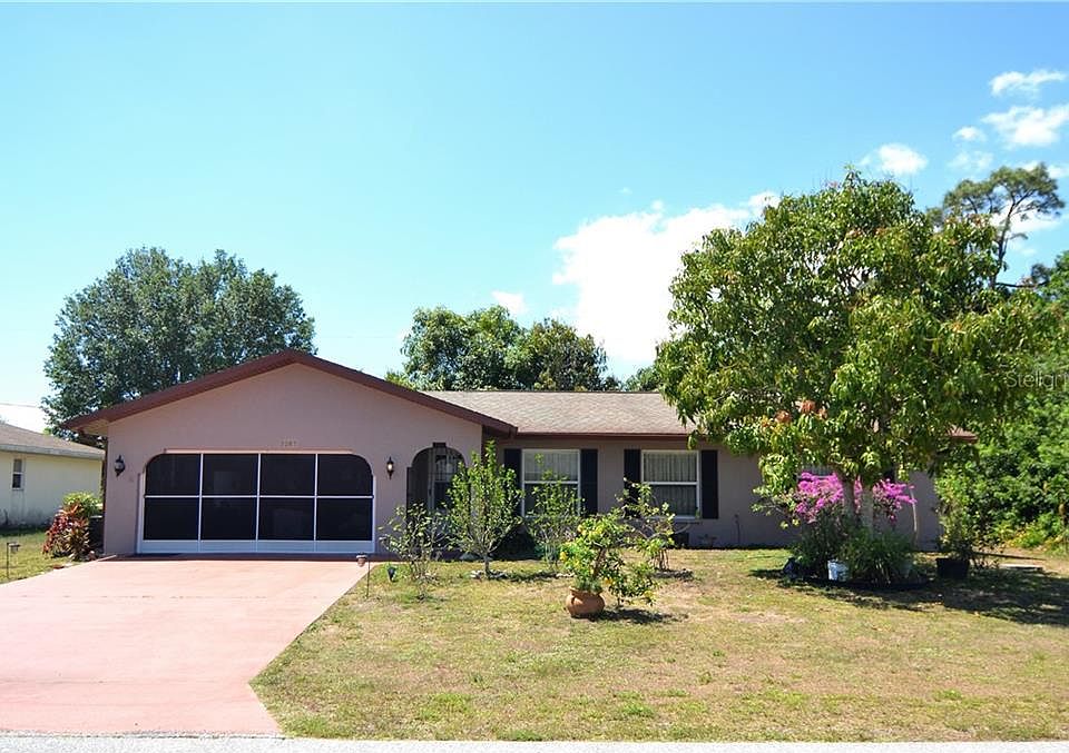 Perfect opportunity to own this 3-bedroom 2-bathroom single family home with attached 2-car garage located in the New York section of Port Charlotte. Home has 1,345 square feet of living space with a size-able shady backyard with fruit trees and storage shed. The split/open floor concept greets you as you enter home, tiled floor entryway leads to the spacious living room and tiled dining room area with access to the lanai. The kitchen has plenty of counter/cabinet space, pantry closet and overlooks the dining room. The master bedroom is spacious with walk-in closet, carpet, sliders out to the lanai area, ceiling fan and leads to master bath with walk in shower. The guest bedrooms are roomy with plenty of closet space and a full guest bathroom. Head out to the lanai area and enjoy your morning coffee or a peaceful evening. Large backyard with an additional patio area great for setting up your grilling area. Attached 2-car garage has been finished off with carpeting and makes for a great additional room with added garage door screen to let in those Florida breezes. Garage also has laundry hook-up, ceiling fan plenty of storage and garage door opener. Home also features large 2-door storage shed, new water heater and A/C was replaced in 2015. Located in a nice quite neighborhood. Centrally located to all the major stores, eateries, schools, beaches, golf and more.