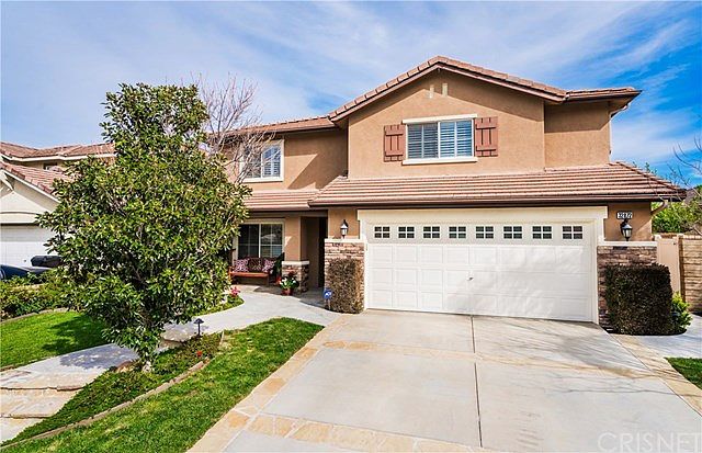 Highly upgraded & better than most model homes, this Castaic view property is sensational! Rare floor plan with 6 full bedrooms & 3 bathrooms up, half bath down for guests. Master bath recently redone in stone & tasteful tile and literally every inch of this home is perfect. Stone floors throughout downstairs & in baths. Shutters, crown & base molding. Gorgeous kitchen with large center island, granite & backsplash. The whole downstairs is open with spacious oversized family room & nice built-ins. 5 of the 6 bedrooms have walk-in closets. Just a great floor plan. Exceptionally well done low maintenance yard with a double spa/waterfall, stone planters, fireplace, built-in BBQ, & views of the valley. 3-car garage & nice curb appeal with no neighbors across the street. True pride of ownership!