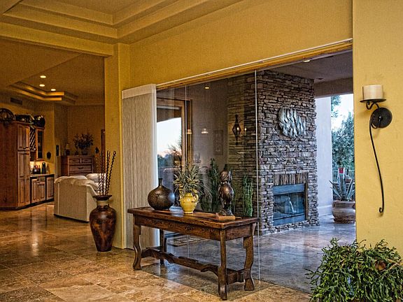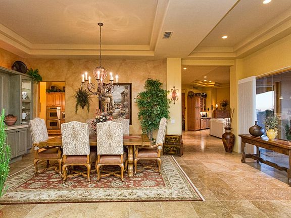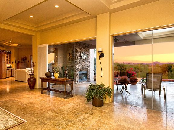 This meticulously maintained home offers fantastic views through the floor to ceiling window wall over the negative edge pool to the city light and mountain views beyond. Other features include high-end finishes, custom closets & built-ins, surround sound, an outdoor kitchen & over-sized garage with huge storage closets. The open floor plan makes it possible to enjoy the great room, formal dining area and kitchen from any vantage point within the main living area all of which are tied together by natural stone floors. The well equipped kitchen features granite counters, stainless steel appliances, double ovens, three dish washers and a unique bonus area with built-in desk and cabinets that provide abundant storage.