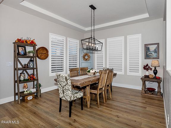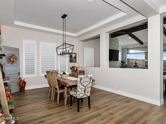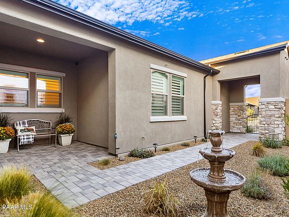Gorgeous Granite Dells 2022 build with over $200K in upgrades. Popular Grace plan with 3,097 sq. ft., 3 bedrooms, 3.5 baths plus formal dining or den. Gated courtyard with a private patio and water fountain. Open foyer with coffered ceilings and formal dining area that opens to the great room. Vaulted ceilings with beams adds modern mountain luxury with a stone fireplace to the ceiling. Expanded kitchen island seats 9. Upgraded GE Cafe appliances with a gas cooktop and confection oven. Separate morning kitchen with a wine frig, prep sink and walk-in pantry. Tons of cabinet space and cabinet built-ins for storage. Luxury vinyl planked flooring. Granite counters. Covered rear paver patio. Pro landscaping. 3 car garage. Washer, dryer and frig incl. Energy efficient, LEED certified.
