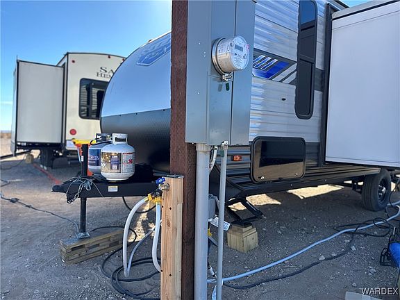 Nestled on 2.35 acres in the serene west side of Golden Valley, Arizona, this property offers a versatile opportunity. This lot has already been cleared and has a permitted septic system, making it well-prepared for its next purpose. Five 275-Gal water tanks about 1,400 storage, an 8X40 storage container that has power with a BREAKER BOX HOOKED UP, NEW WASHER/ DRYER stays, and a 200-amp RV Plug included, adding practical value and utility ready for your camping getaway or new location! Enjoy the quiet charm of rural living while still being conveniently close to the shopping and amenities of both Golden Valley and Kingman. no restrictions, roads are accessible and not in a flood zone! Property being sold without trailers. 2024 Forest River Salem FSX for additional 25K (has 2,000 miles), 2021 Forest River Salem Hemisphere an additional 45K. Seller is willing to OWNER CARRY FINANCE!!!Whether you're envisioning a new homestead or a getaway spot for your RV and off-road adventures, this property has you covered. Amazing mountain views, lots of space with 2+ acres!! Located in the desirable Golden Valley Ranchos unit, this property is ready for new ownership and the next chapter in its story. This may be the property you have been waiting for!