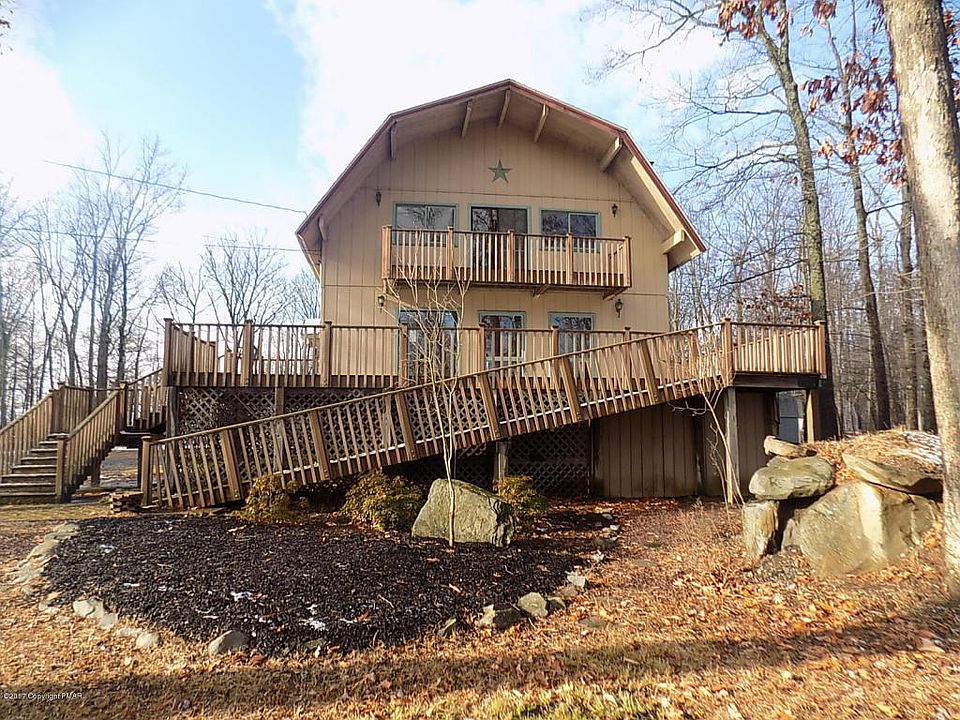Within Minutes To Shopping & Rt 80, Is This Chalet Style Home Set Back Off The Road on A Private Wooded Lot With Plenty Of Parking. Ideal For Entertaining With A Large composite Deck Area, Balcony Off The Master Bedroom. Brand New Carpets & Freshly Painted, Offering 3 Bedrooms and 2 Full Bathrooms, A Unfinished Walk Out Basement with Workshop/ Hobby Room. Eat In Kitchen with Dining Area, Stone Fireplace in Living-room, Exposed Beams, Attic Storage, Loft Area with Linen Closet, Central Air Conditioning, Area of Fenced Yard, Handicap Ramp. Buyer Pays 2% Transfer Tax