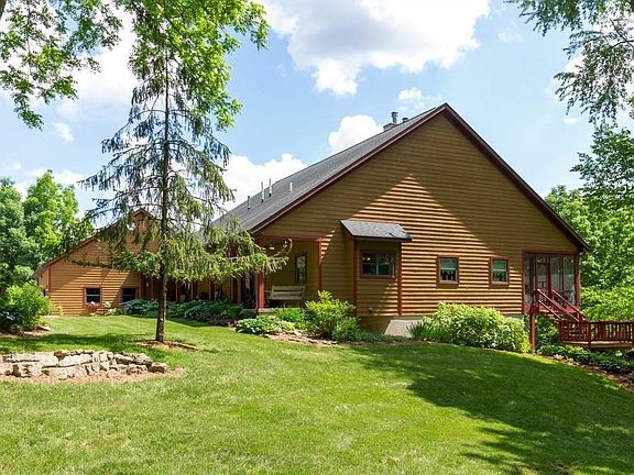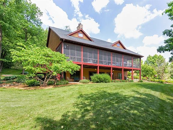 Fantastic, one of a kind acreage situated on its own 18 acres but nestled up to 819 acres of the Ram Hollow Wildlife Management Area. It's not often you can have deer, turkeys, an abundance of song birds and a trout steam right outside your back door! The beautiful 4 bedroom 3.5 bath home offers over 3300 sq ft of living space. Main level features an open kitchen with newer solid surface countertops and stainless steel appliances , sliders to a 760 sq ft screen porch with beautiful valley views, large living room with stone fireplace, family room, 1/2 bath and huge master bedroom suite with full master bath with walk-in closet and laundry. The finished walk-out lower level offers another family room with stone fireplace, 3 nice sized bedrooms, full bathroom and an large storage area. There is plenty of room for vehicles and toys in the 1440 sq ft attached garage that features a 480 sq ft heated shop area, bathroom and 476 sq ft overhead loft area for storage. In addition to that there is a newly constructed 2400 sq ft steel utility building. An auxiliary generator and solar panels have also been recently added . Outside is ever natures lovers dream with views of rolling hills, valleys and babbling streams.