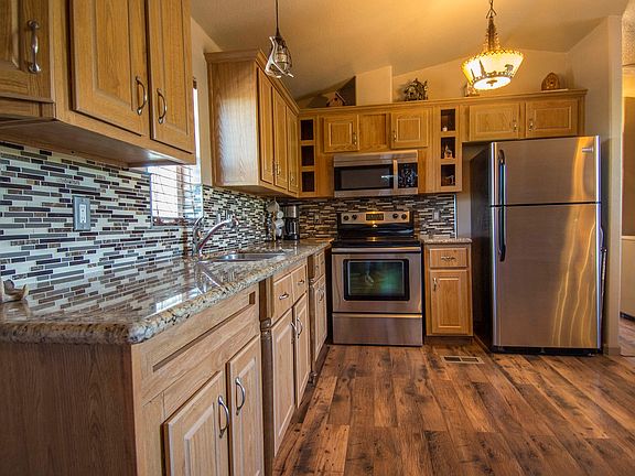Remodeled 2007 Cavco with beautiful interior from the Granite countertops to the laminate flooring, remodeled kitchen, new appliances, remodeled bathroom with walk-in shower and more. Front deck has gorgeous views and back deck is just as nice. Both have trex decking. A/C / Heat unit, All electric...no propane. Completely fenced and gated. Home has plenty of closet space This home was designed with double insulation to be especially energy efficient. 2500 gallon water tank with a new pump motor. Home is tied down and has approx 6 inches of footers underneath the skirting to keep out local critters. Amazing property and ready to use today. Most furnishings will stay (exception is the electric fireplace and rolling kitchen work area) The septic system is a 1000 gallon tank designed for a larger home. Close to State Trust Land (see map picture) Refrigerator and microwave are both new, and oven/range is approx 2 years old. Washer and Dryer will stay with the sale too. Very nicely decorated with upgraded light fixtures, towel racks, etc all providing a "cabin" feel. Make your appointment to see this home today. Directions: From Ashfork follow Double A Ranch Road north to Cumberland and turn left. Take Cumberland to Murdo, turn left, turn first right on Pearl, and then first right on East View. Eastview runs back into Cumberland (turn left onto Cumberland). Right at Coconino, Right on Gerry. Property on corner of Tina and Gerry.