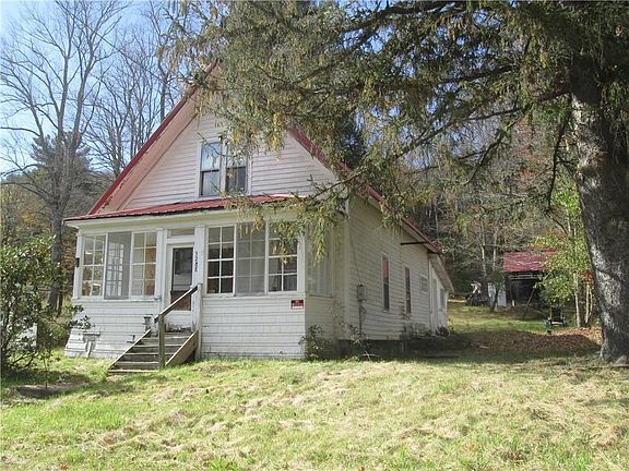 Rural property that would be perfect for a camp or a first-time home buyer, does need some TLC. The kitchen is definitely camp style, make this your own design with a walk-in pantry. Laundry room. Two bedrooms on the first level and two bedrooms on the second level. Front enclosed sunporch and side enclosed porch. The home/camp does need some work but has potential. There are approx. three large sheds on the property. At one time there was a heater in the one shed. Walk-in partial basement. Public sewer and water well. Seller will not be removing any furniture, sold as is condition. The electric and gas has been shut off, home is winterized. Bathroom needs alot of work. Must be preapproved.
