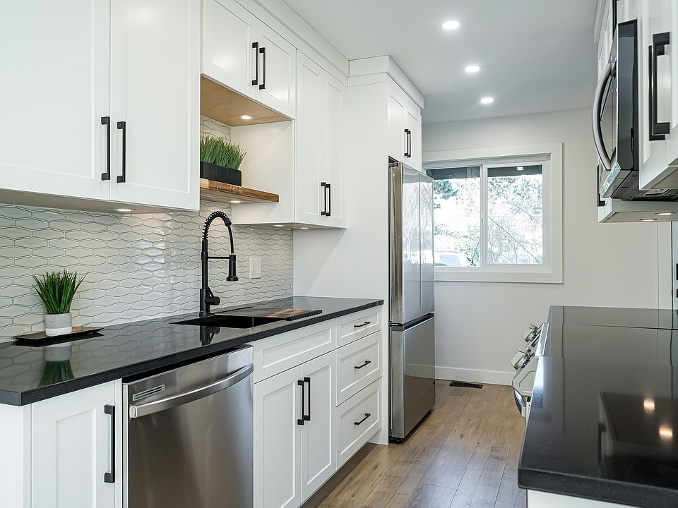 WOW WOW WOW! Impeccably Renovated Townhome at family friendly BEVAN GARDENS. It feels like a brand new, elegant home inside! Great space for just starting out, bring your family or investor ready! A Beautiful design theme and bright colours make this space truly inviting. ALL NEW kitchen, bathrooms, appliances, flooring, paint, lighting, high efficiency furnace (roughed in for AC), windows and doors with updated electrical, recent hot-water tank, enclosed yard for entertaining, kids and pets! It's all here! Just across street from Mill Lake, Table Bistro, quick walks to your own playground, all levels of schools, shopping, transit, Abby Hospital, UFV, highway access. Don't miss out on this beautiful home in the heart of Abbotsford!