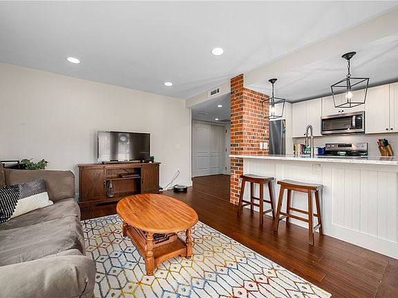 Light and bright! Exterior patio is perfect for relaxing while unwinding from a long day. Enter into French doors with internal blinds and enjoy one of two ways to enter this posh garden entry level 2 bedroom condo in desirable Holmes Court. Beautifully updated kitchen boasts soft-close white cabinetry, stainless steel appliances, extra deep stainless sink, quartz counter tops, bar seating and loads of storage & cabinetry. Oversized updated full bath offers white cabinetry accented w/black hardware, gray ceramic tile flooring, shower/tub combo with surround tile accented with gray mortar & beautiful chrome fixtures. Shiplap accents plus a tasteful mirror is surrounded by two light fixtures. Stackable laundry in unit. The owners suite has a center light fixture, walk-in closet & hardwood adorns the floors. Crisp white baseboards allow a tasteful contrast with the neutral color walls. Stylish window treatments. Pella windows. Modern LED lighting & newer HVAC. Private assigned parking #4.